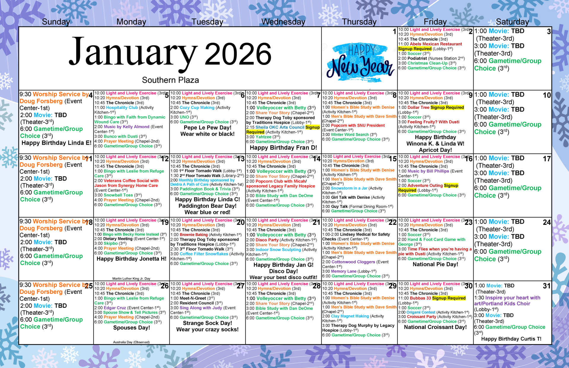 Assisted Living Calendar • january 2026